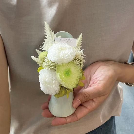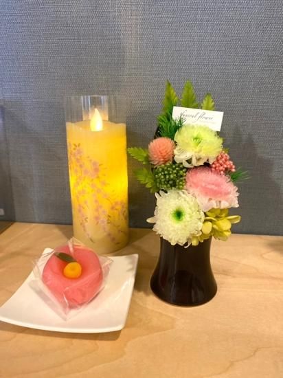 縦長で小さなお仏壇にもスマートにお供えできるお供えアレンジメントです。